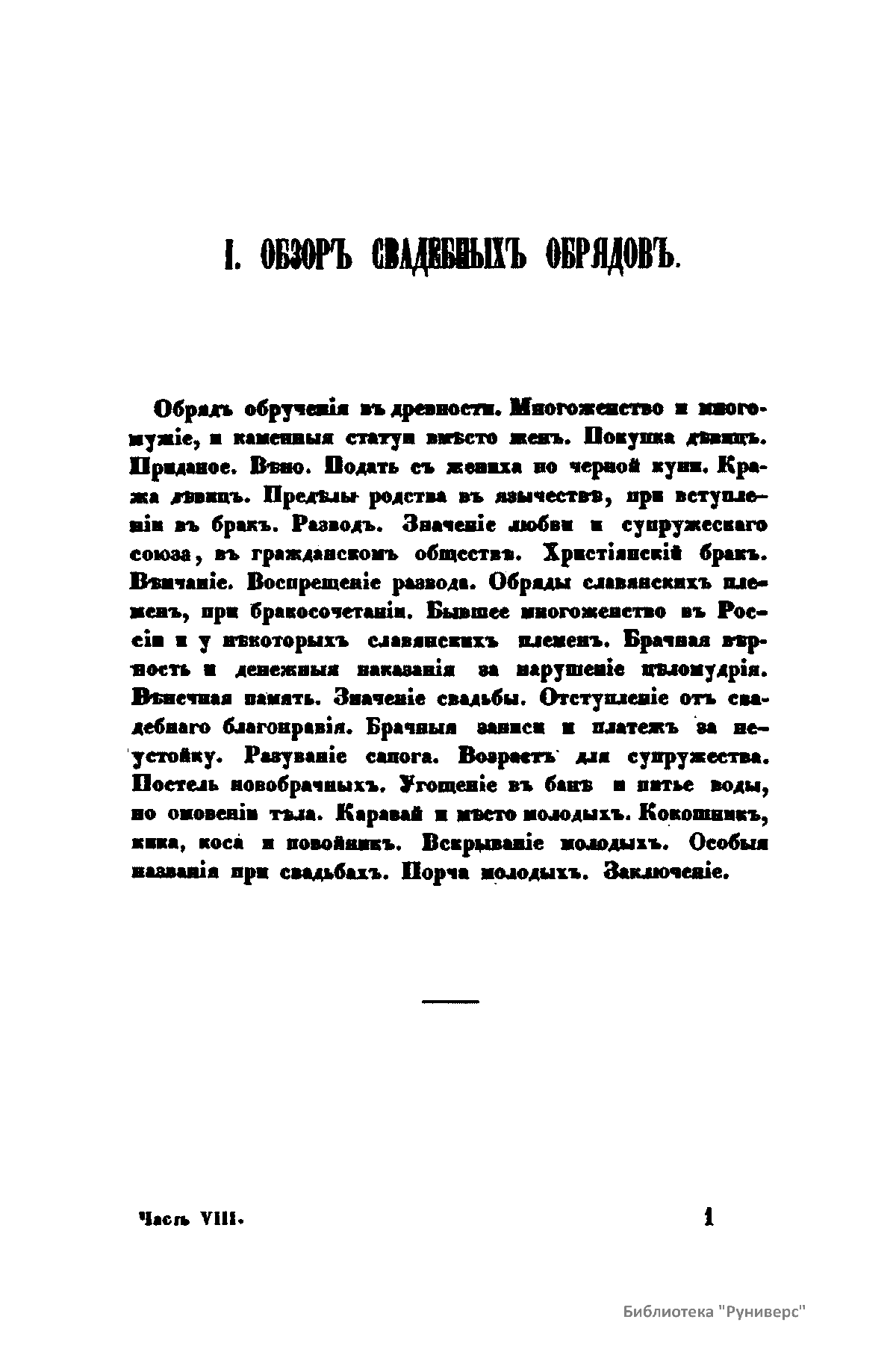 В издании в историческом аспекте автор рассматривает следующие вопросы: свойства и характер русских славян; жилища; домоводство; одежда; образ жизни; музыка.