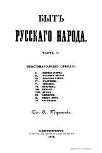 В издании в историческом аспекте автор рассматривает следующие вопросы: свойства и характер русских славян; жилища; домоводство; одежда; образ жизни; музыка.