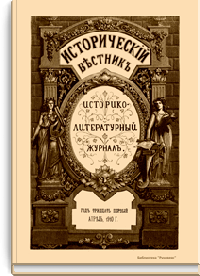 «Исторический вестник» - русский ежемесячный историко-литературный журнал. Издавался в Санкт-Петербурге с 1880-го по 1917 г. Журнал был основан А.С. Сувориным и С.Н. Шубинским с целью «знакомить читателей в живой, общедоступной форме с современным состоянием исторической науки и литературы в России и Европе». Вышло 150 тт. Каждый том состоял из трёх ежемесячных выпусков, имел свою нумерацию страниц, оглавление, список иллюстраций. Журнал приобрёл устойчивую популярность среди читателей, заняв прочное место в «триумвирате» русских исторических журналов наряду с «Русским архивом» и «Русской стариной». опережая их по количеству подписчиков. Отличием «Исторического вестника» было то, что он не помещал на своих страницах необработанных, сырых материалов. С другой стороны, журнал приближался по своему типу к журналам общелитературного образца, сочетая в себе коммерческий успех и доступное изложение материала.