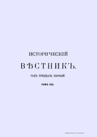 «Исторический вестник» - русский ежемесячный историко-литературный журнал. Издавался в Санкт-Петербурге с 1880-го по 1917 г. Журнал был основан А.С. Сувориным и С.Н. Шубинским с целью «знакомить читателей в живой, общедоступной форме с современным состоянием исторической науки и литературы в России и Европе». Вышло 150 тт. Каждый том состоял из трёх ежемесячных выпусков, имел свою нумерацию страниц, оглавление, список иллюстраций. Журнал приобрёл устойчивую популярность среди читателей, заняв прочное место в «триумвирате» русских исторических журналов наряду с «Русским архивом» и «Русской стариной». опережая их по количеству подписчиков. Отличием «Исторического вестника» было то, что он не помещал на своих страницах необработанных, сырых материалов. С другой стороны, журнал приближался по своему типу к журналам общелитературного образца, сочетая в себе коммерческий успех и доступное изложение материала.