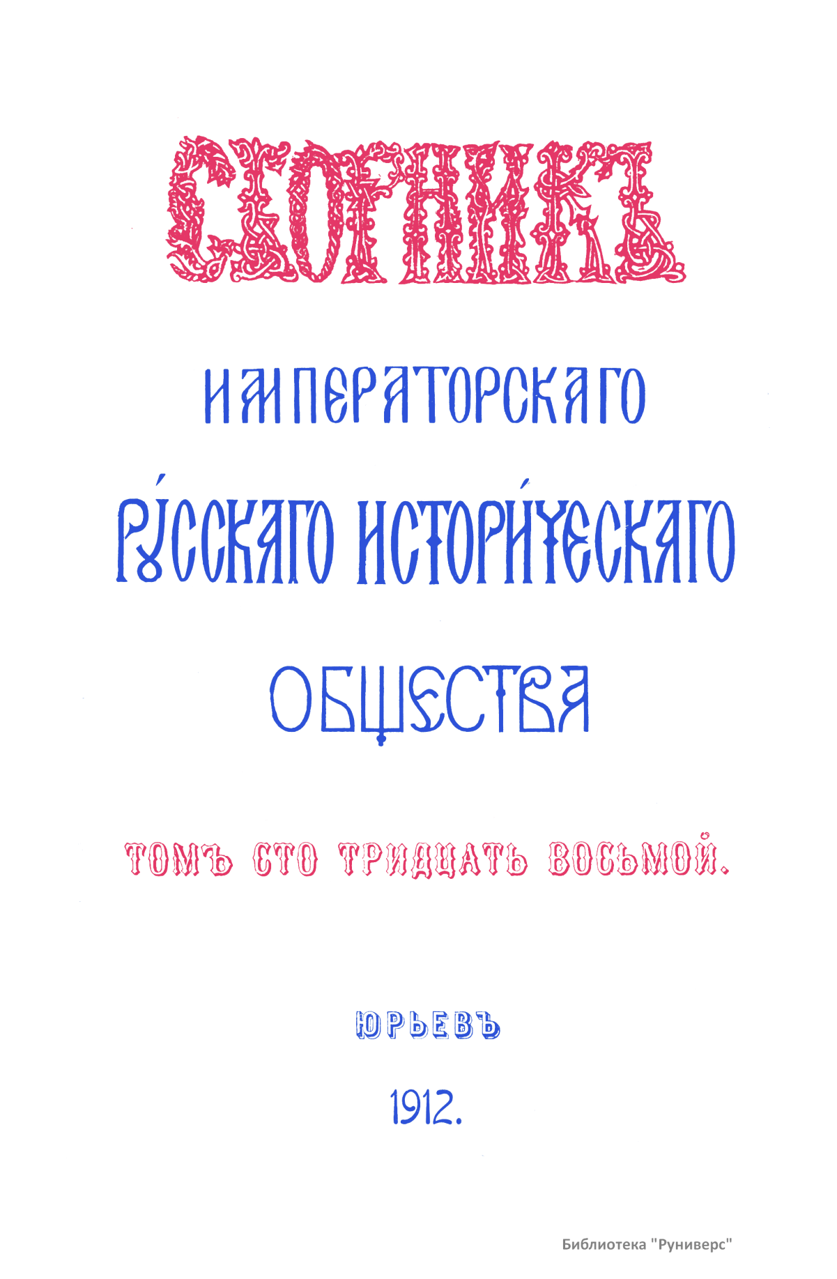 Сборникъ Русскаго историческаго общества. Томъ сто тридцать восьмой