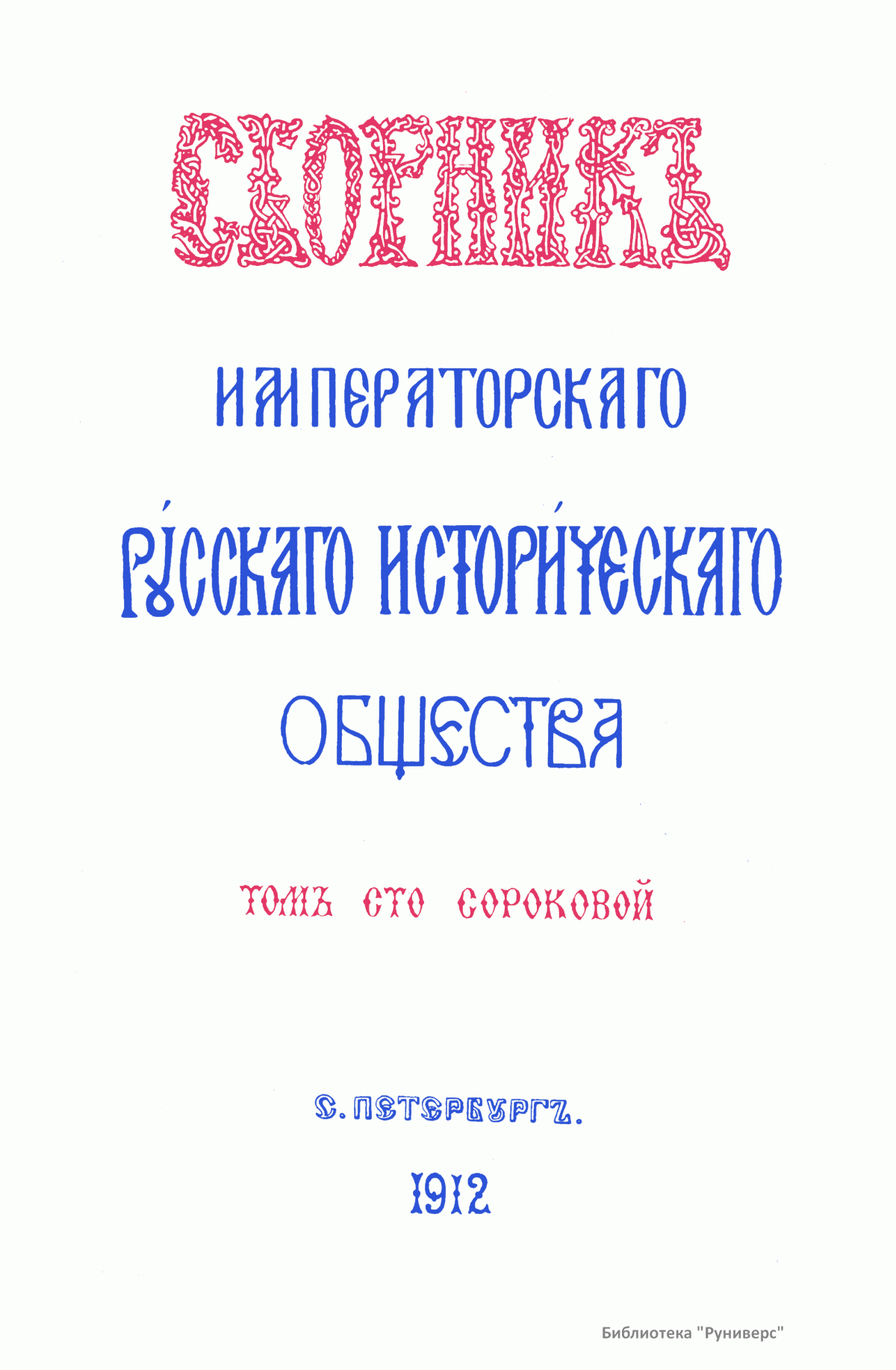 Сборникъ Русскаго историческаго общества. Томъ сто сороковой