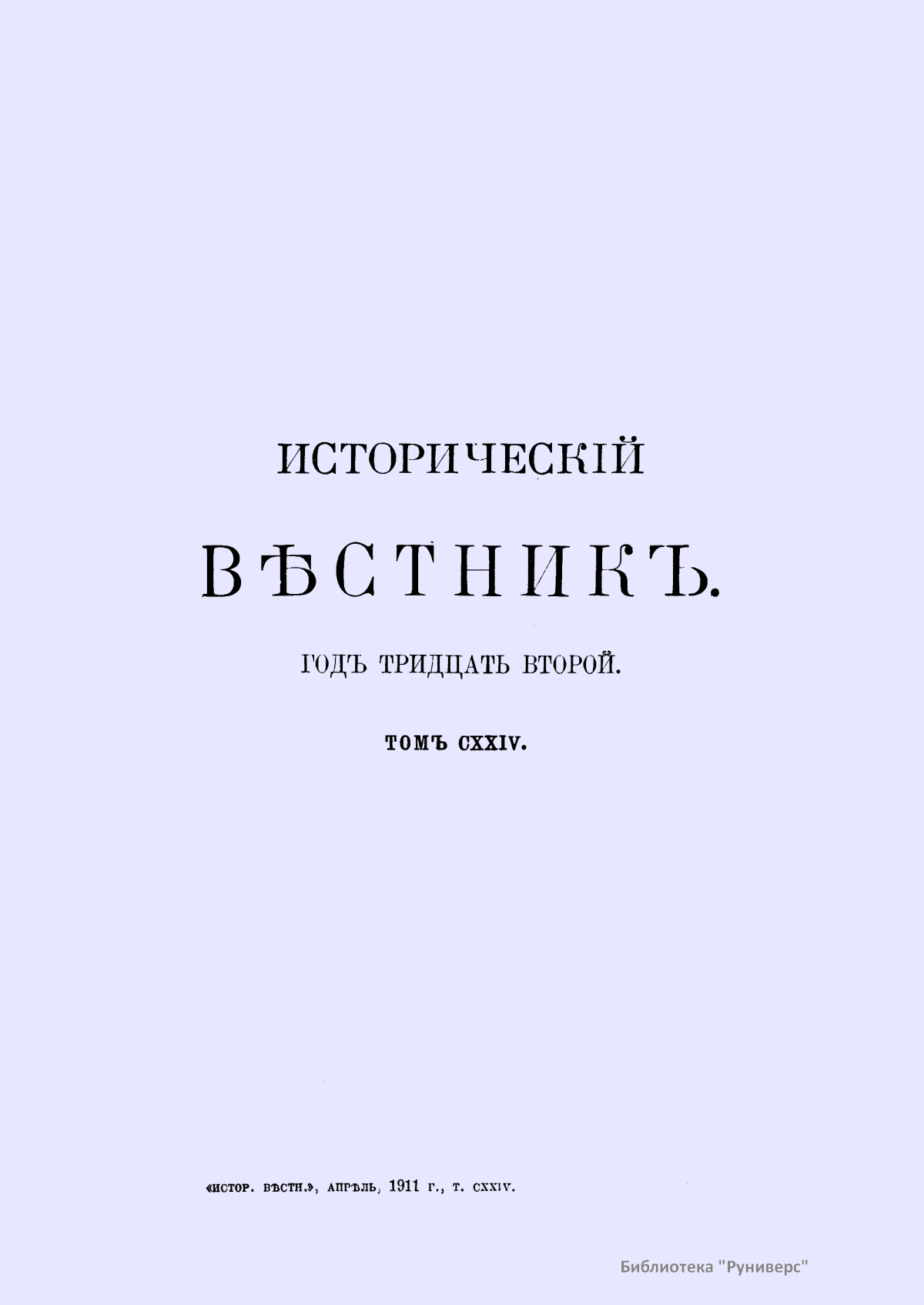 Исторический вестник. Историко-литературный журнал. Том CXXIV
