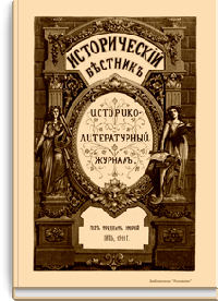 «Исторический вестник» - русский ежемесячный историко-литературный журнал. Издавался в Санкт-Петербурге с 1880-го по 1917 г. Журнал был основан А.С. Сувориным и С.Н. Шубинским с целью «знакомить читателей в живой, общедоступной форме с современным состоянием исторической науки и литературы в России и Европе». Вышло 150 тт. Каждый том состоял из трёх ежемесячных выпусков, имел свою нумерацию страниц, оглавление, список иллюстраций. Журнал приобрёл устойчивую популярность среди читателей, заняв прочное место в «триумвирате» русских исторических журналов наряду с «Русским архивом» и «Русской стариной». опережая их по количеству подписчиков. Отличием «Исторического вестника» было то, что он не помещал на своих страницах необработанных, сырых материалов. С другой стороны, журнал приближался по своему типу к журналам общелитературного образца, сочетая в себе коммерческий успех и доступное изложение материала.