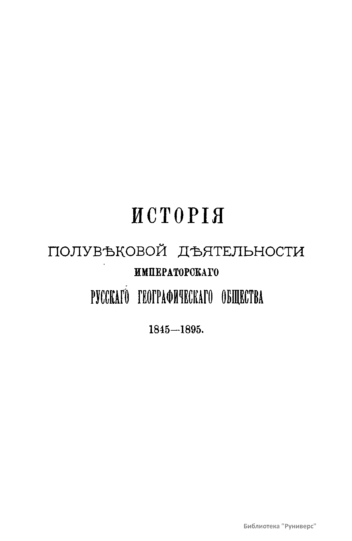 История полувековой деятельности Императорского Русского Географического Общества 1845-1895. Часть II-я