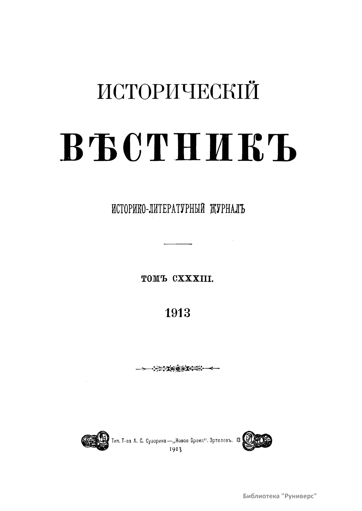 Исторический вестник. Историко-литературный журнал. Том CXXXIII