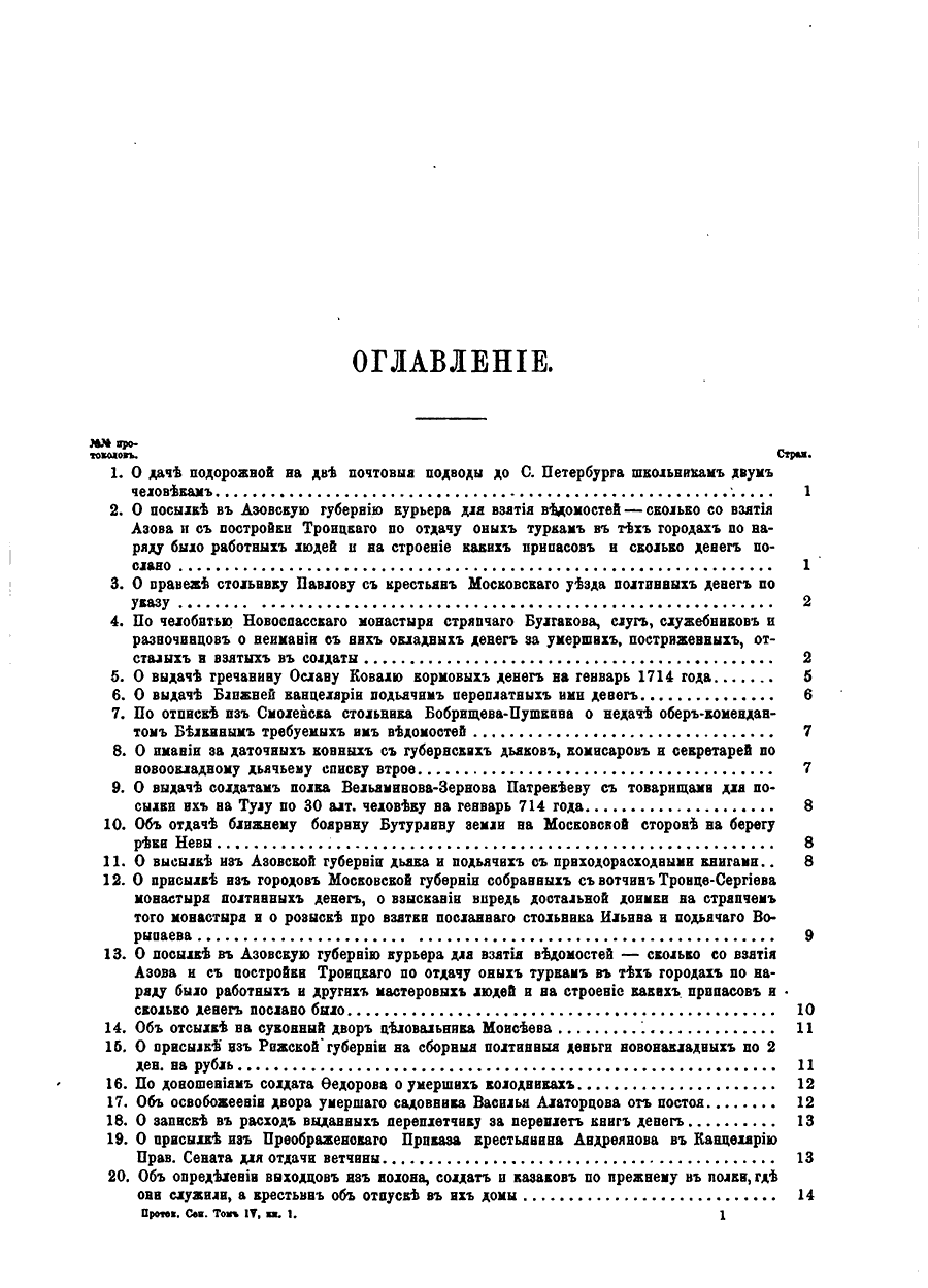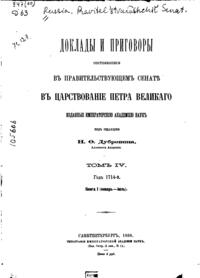 Доклады и приговоры состоявшиеся в Правительствующем Сенате в царствование Петра Великого. Том IV. Книга I (январь-июль)