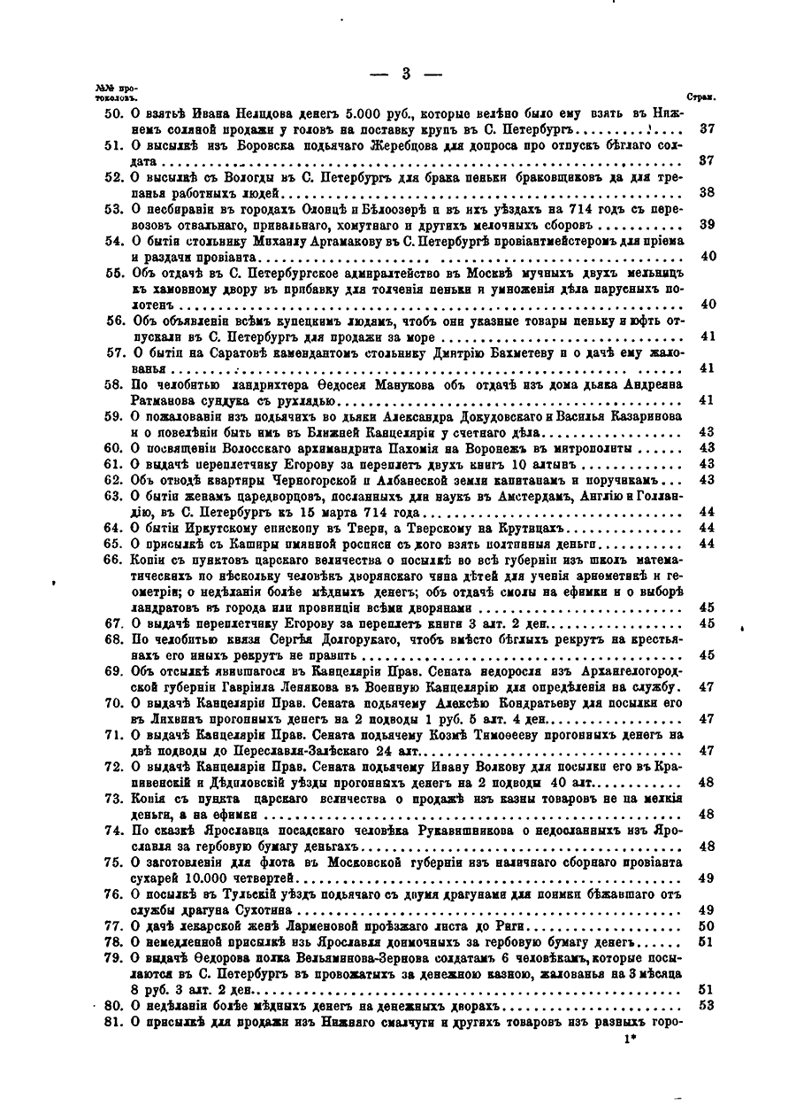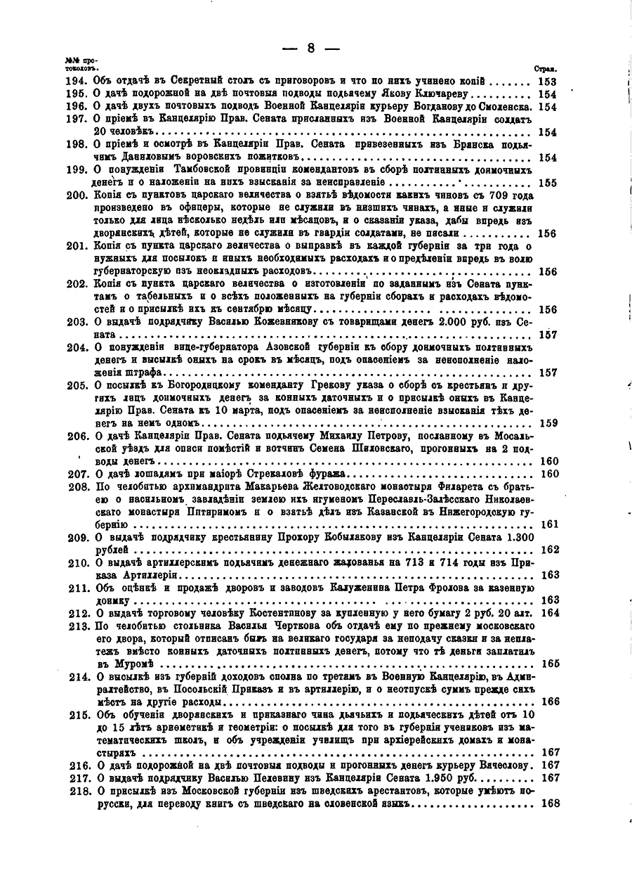 Доклады и приговоры состоявшiеся въ Правительствующемъ Сенатѣ въ царствованiе Петра Великаго