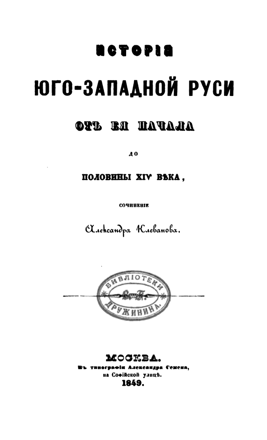 Клеванов ведет «История Юго-Западной Руси» с легендарных античных времен и завершает событиями периода конца ее самобытного существования.
