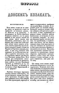 Исторiя или повѣствование о Донскихъ козакахъ