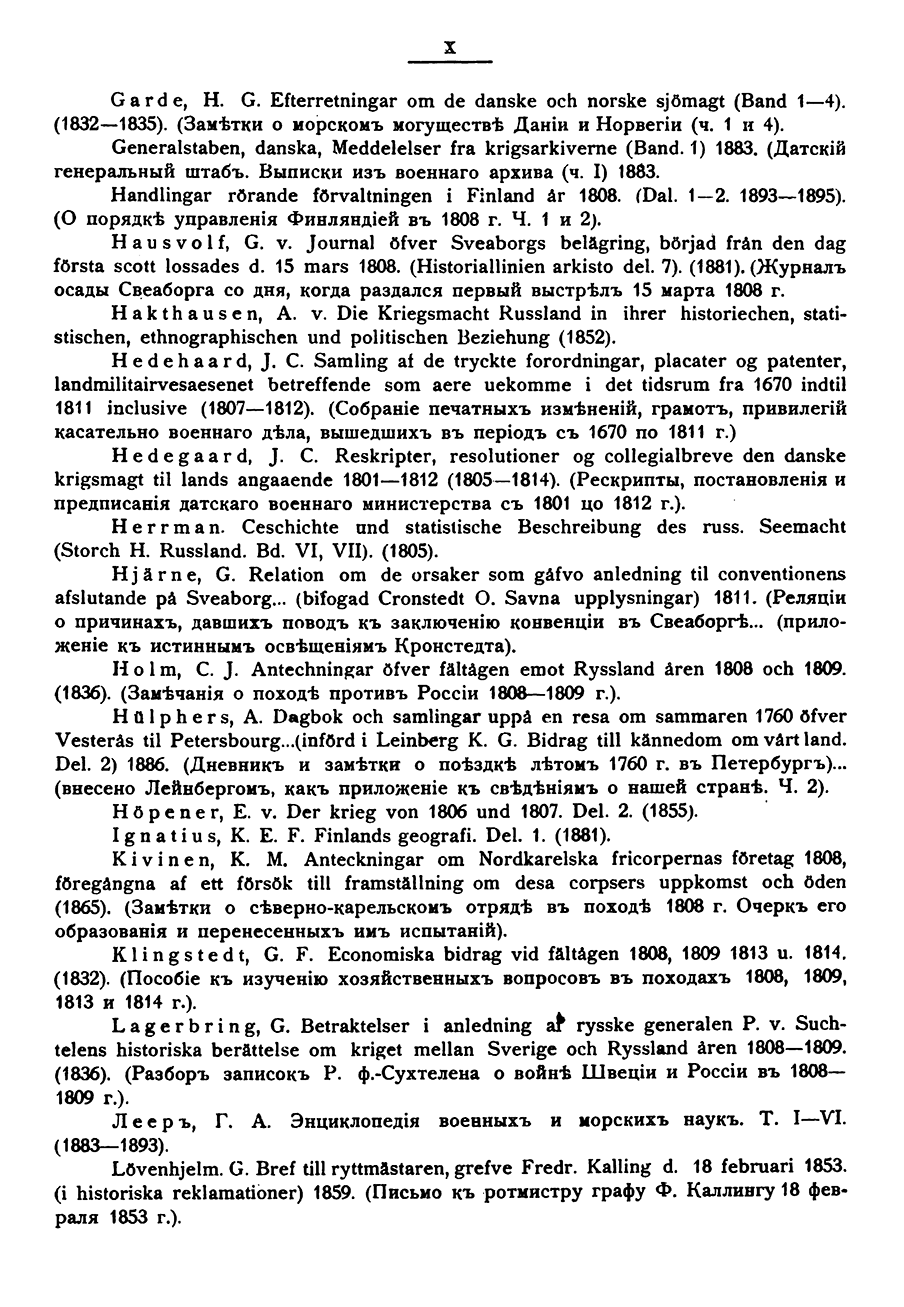 Перевод на русский язык исследования , подготовленного Историческим отделом Шведского генерального щтаба, сделан группой офицеров Российского Генштаба и Финляндского военного округа под руководством полковника А.М. Алексеева