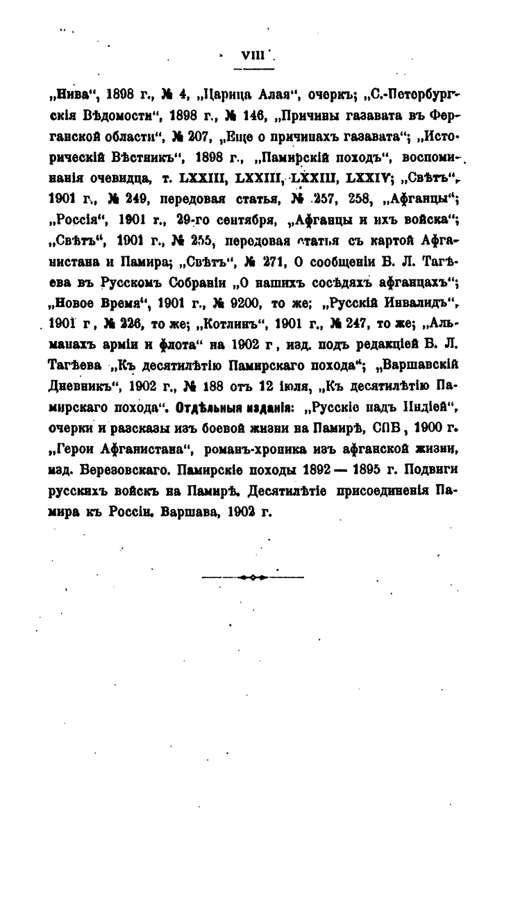 «Памирские походы бесспорно можно считать самыми трудными походами в Азии, в смысле борьбы с суровой природой, обессмертившими новой славой лихие туркестанские войска, водрузившие русское знамя на суровой «крыше мира»