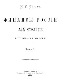 И.С. Блиох – выходец из семьи польских евреев, крупнейший российский банкир, совладелец железных дорог, один из основателей движения борьбы за мир в Европе, поддерживал развитие сионизма. Считается автором значительного числа крупных обобщающих научных исследований, освещающих глобальные стороны государственного управления. Например, фундаментальный труд «Будущая война и ее экономические последствия». В 7-ти томах; вышедший на основных европейских языках. Существуют весомые сомнения в том, что И.С. Блиох самостоятельно подготовил ряд огромных многотомных научных работ. Так, в мемуарах первого премьер-министра России С.Ю. Витте не без основания отмечается, что Блиох только составлял план книги, а писала её группа специалистов по его заказу. В биографической статье о Блиохе, говорится, что в написании его книги о войне участвовали офицеры всех крупных европейских армий, в том числе русские офицеры Генерального Штаба.