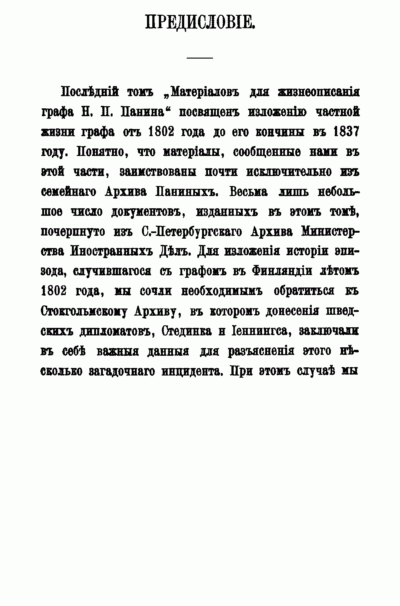 Матерiалы для жизнеописанiя графа Никиты Петровича Панина