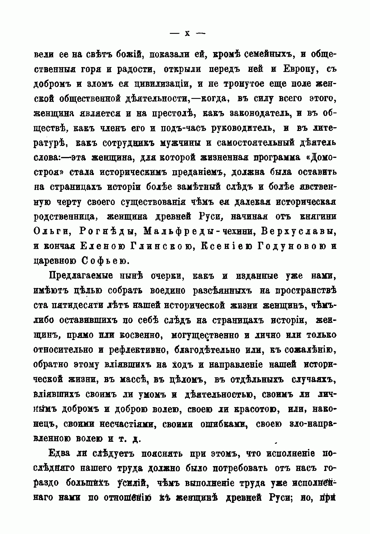 По мнению автора книги, история русской женщины не только пополняет русскую историю вообще, но и уясняет её больше, чем вся сумма прочих исторических материалов. Каков характер и направление исторической эпохи, такой является и женщина едва ли не исключительнее, чем мужчина. Труд Д. Мордовцева состоит из трёх частей – сообразно трём заметно друг от друга отличающимся историческим эпохам. Это первые пятьдесят лет от начала петровских реформ и окончательного введения России в общий строй европейских держав до возрождения начал сознания русского национального чувства; вторые пятьдесят лет – эпоха развития этого чувства – до конца восемнадцатого столетия; девятнадцатое столетие. Настоящая книга посвящена женщине первой половины восемнадцатого века. Читатель увидит, как русская женщина, «рванувшись из терема в широко раскрытую Петром дверь и надев немецкое платье вместо сарафана и телогреи, чтобы блистать в ассамблее и при дворе, наделала немало ошибок и сама немало пострадала, пока не поняла несколько отчётливее своего женского призвания». – Книга включает девятнадцать биографий.