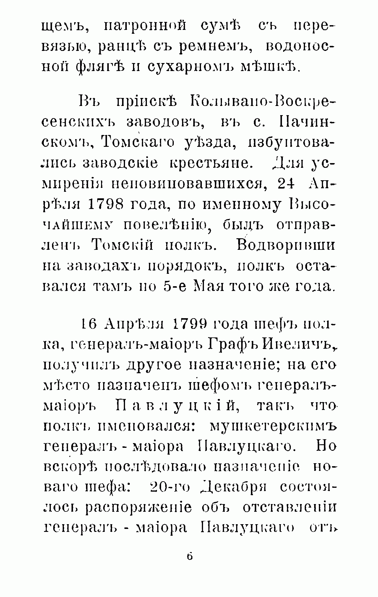 Полковая хроника составлена в связи с празднованием 100-летия 39-го Томского пехотного полка. Двухбатальонный Томский мушкетерский полк был сформирован 29 ноября 1796 года в Томске из Екатеринбургского и Семипалатинского полевых батальонов. Летом 1808 г. полк навсегда покинул Томскую губернию и был переведен в Омск, откуда вместе с остальными сибирскими полками начал длительный поход на запад – в Волынскую губернию, куда прибыл в сентябре 1809 г. С тех пор он постоянно дислоцировался на западных рубежах России. За долгие годы своей истории полк принимал активное участие в Отечественной войне 1812 года, русско-турецкой войне 1828–1829 г., в венгерском (1849 г.) и польском (1863 г.) походах, внёс большой вклад в оборону Севастополя в ходе Крымской войны. С 1864 г. несколько раз менял свою дислокацию в юго-западных областях России, однако участия в боевых действиях вплоть до Первой мировой войны не принимал.