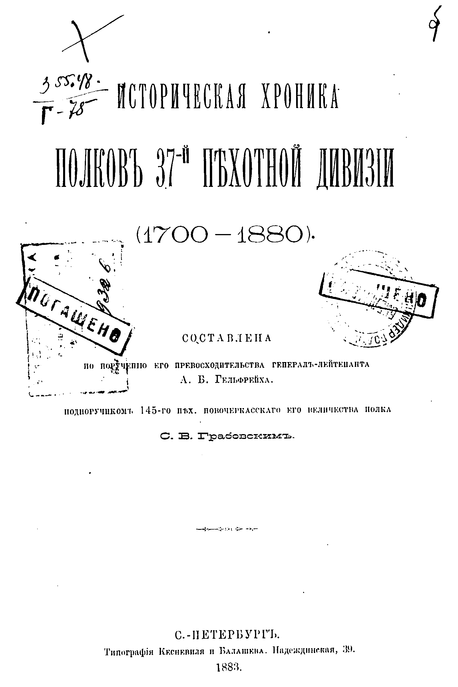 Историческая хроника полковъ 37-й пѣхотной дивизiи. (1700-1880)
