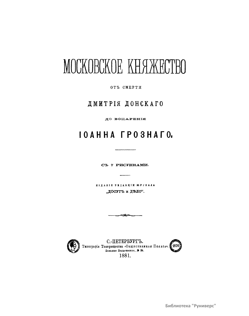 Популярная брошюра посвящена истории Московского княжества от смерти Дмитрия Донского до воцарения Ивана Грозного. Автор рассказывает о княжении Василия Дмитриевича, Василия II Васильевича (Темного), Ивана III Васильевича, Василия III Ивановича. Издание снабжено семью рисунками: Встреча иконы Владимирской Божьей матери на Кучковом поле. Примирение Василия Темного с Шемякою. Василий и сын его Иван III. Владыка Новгородский Симеон примиряет граждан. Уничтожение Новгородского веча. Иван III уничтожает ханскую басму. Торжество Василия III и кручина псковитян.