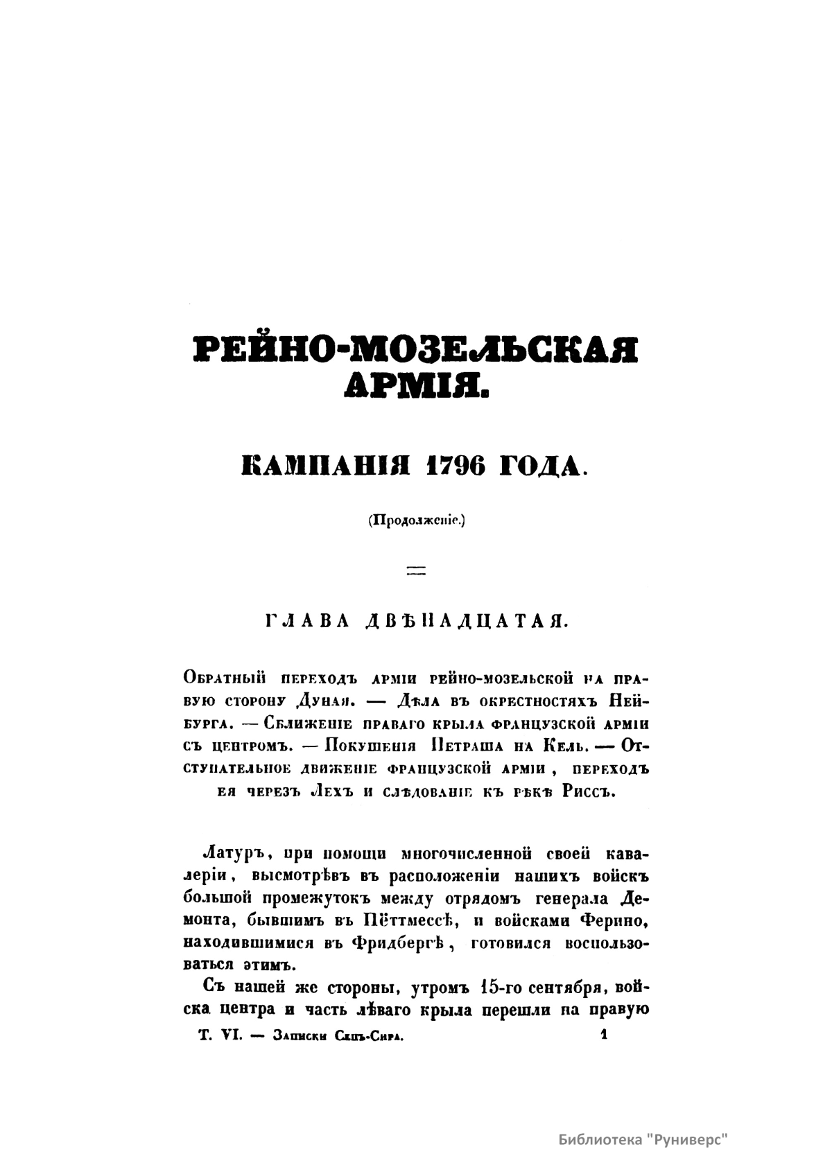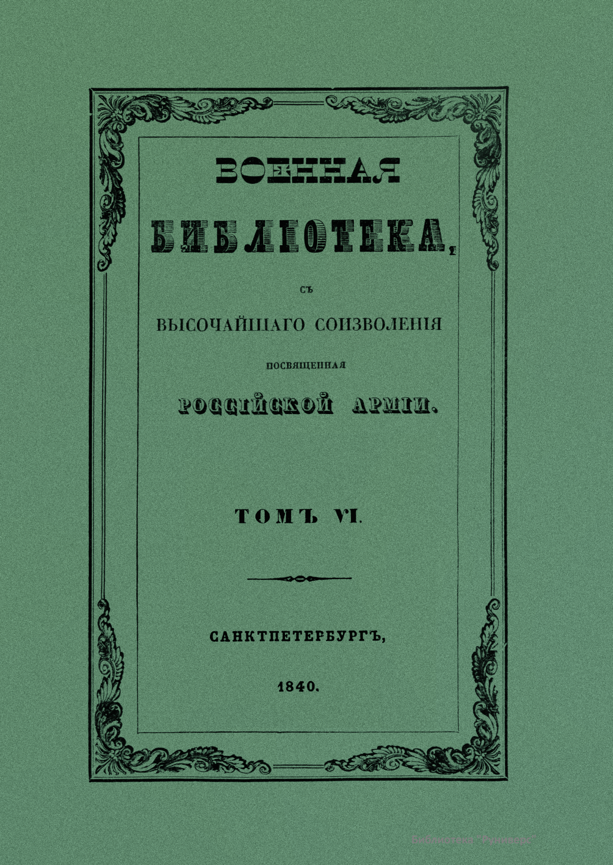 Военная библiотека, съ высочайшаго соизволенiя посвященная российской армiи. Томъ VI