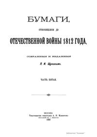 Бумаги относящиеся до отечественной войны 1812 года. Часть пятая