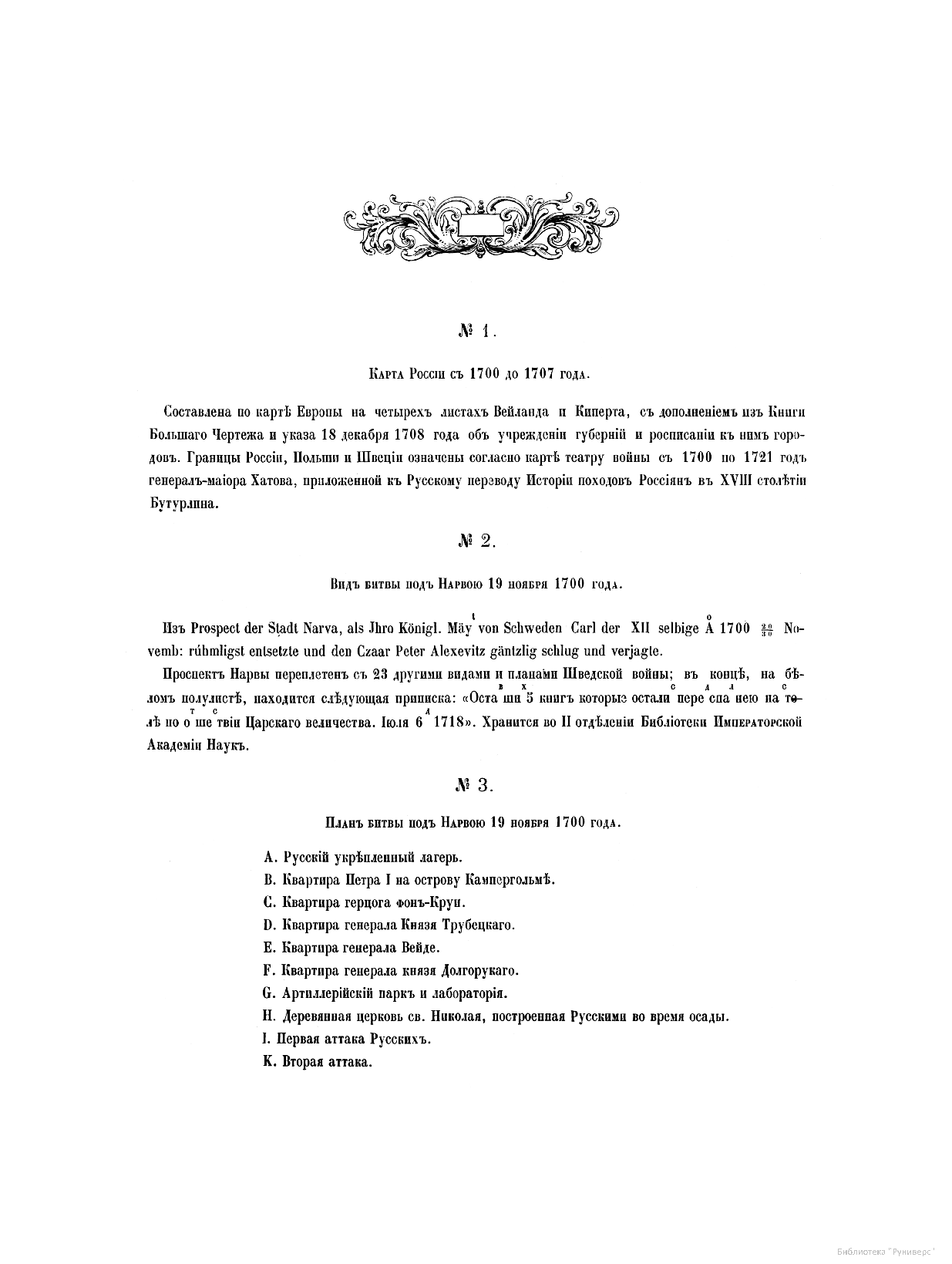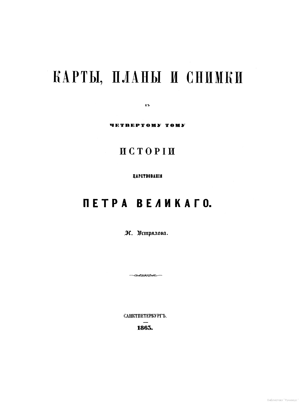 Карты, планы и снимки к четвертому тому исторiи царствованiя Петра Великаго