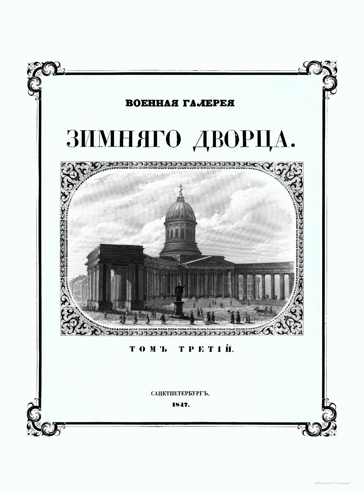 Александр Иванович Михайловский-Данилевский (1790–1848) — участник Отечественной войны 1812 г., генерал-лейтенант, военный историк и академик Санкт-Петербургской академии наук. Автор многих трудов по истории войн Российской империи. В последние годы своей жизни А. И. Михайловский-Данилевский был главным редактором «Военной галереи Зимнего дворца». Война 1812 г. получила название Отечественной и стала ярчайшей страницей российской истории и культуры. В Зимнем дворце столицы император Александр I повелел создать Военную галерею 1812 г. Ни в одном из дворцов Европы не существовало портретной галереи подобной той, что должна была украсить парадную резиденцию русских императоров. В Военной галерее Зимнего дворца должны были разместиться более 300 портретов, для исполнения которых в Петербург весной 1819 г. приехал известный английский живописец Джордж Доу (Даву). В создании портретной галереи принимали участие и русские художники — В. А. Голике, А. В. Поляков. Торжественное открытие галереи состоялось уже в царствование Николая I, в годовщину изгнания французов из России, 25 декабря 1826 г. Шеститомное издание «Император Александр I и его сподвижники в 1812, 1813, 1814 и 1815 гг.: Военная галерея Зимнего дворца, издаваемая с высочайшего соизволения» выходило на протяжении 1845–1849 гг. в петербургской типографии Карла Крайя. Издание объединило портреты и биографии российских генералов, участвовавших в Отечественной войне и заграничных походах. Главным редактором, а также составителем многих биографий стал А. И. Михайловский-Данилевский. Портреты с живописных оригиналов были гравированы на стали парижскими художниками Гюо и Долле. На страницах издания почетное место отведено императору Александру I, представлены биографии и портреты М. И. Кутузова, М. Б. Барклая-де-Толли, вел. кн. Константина Павловича, А. А. Аракчеева, П. П. Коновницына, Д. П. Немировского, Д. С. Дохтурова, П. И. Багратиона, Н. Н. Раевского, А. П. Ермолова, М. И. Платова и многих других героев. Труд А. И. Михайловского-Данилевского содержит обширный документальный и мемуарный материал, представляет подробное описание и анализ военных действий России и Франции на протяжении Отечественной войны 1812 г.