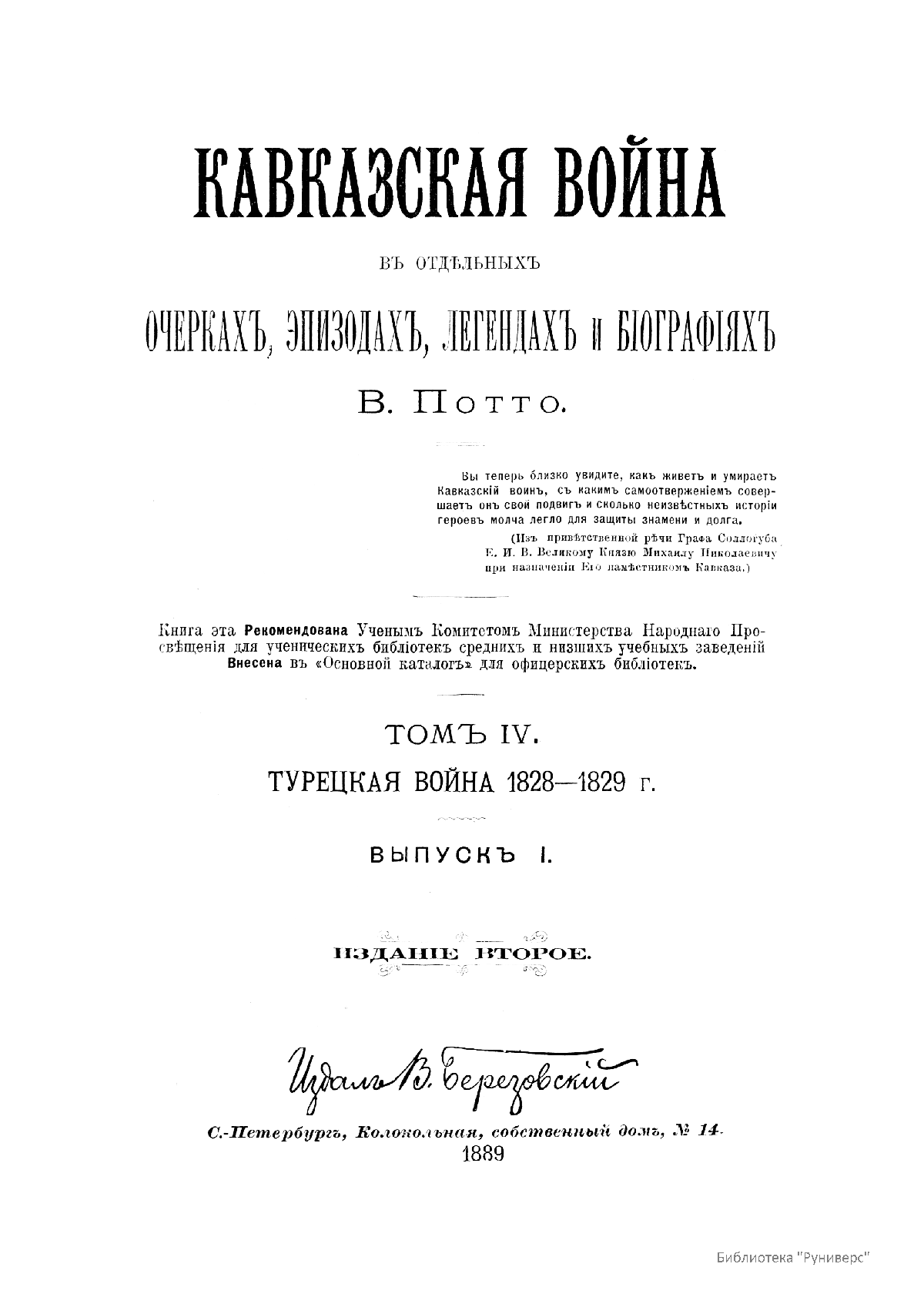 Кавказская война въ отдѣльныхъ очеркахъ, эпизодахъ, легендахъ и бiографияхъ. Томъ 4-й. Турецкая война 1828-1829 г.