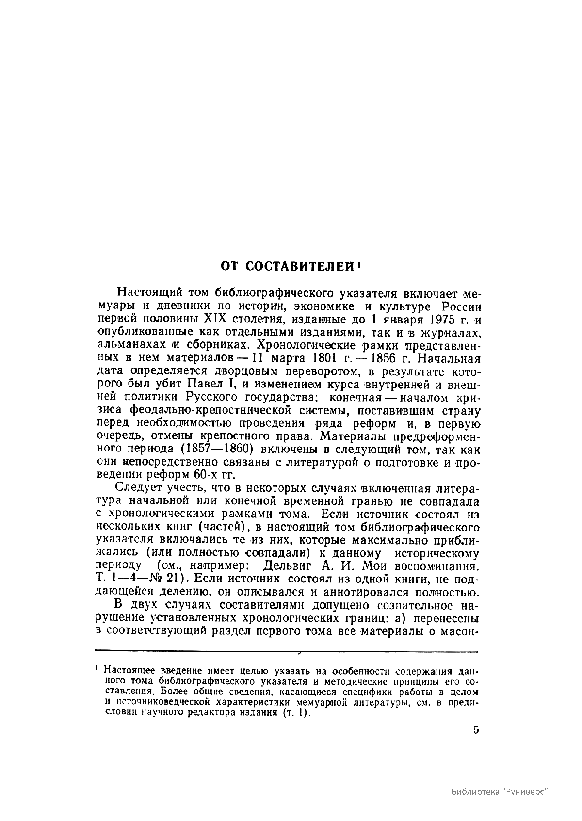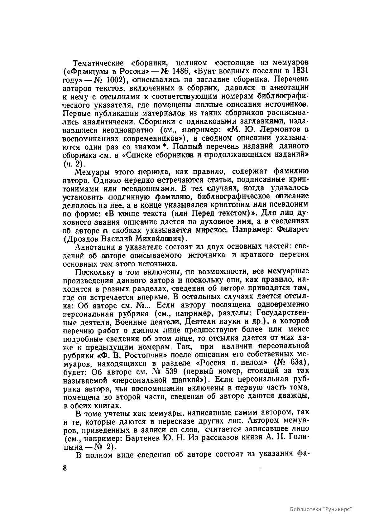 Многотомное издание этого уникального библиографического исследования, ставшего итогом многолетней работы большого коллектива ведущих отечественных источниковедов и библиографов главных библиотек нашей страны, представляет собой крупнейшее собрание аннотированной мемуарной литературы по истории России. Ведущую роль в создании этого фундаментального издания сыграл крупный отечественный ученый-историк П.А. Зайончковский, под редакцией и неусыпным контролем которого разрабатывался и выходил представленный многотомник (последние 5 книг вышли после кончины этого замечательного учёного-энциклопедиста).
