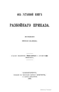 Объ уставной книгѣ разбойнаго приказа