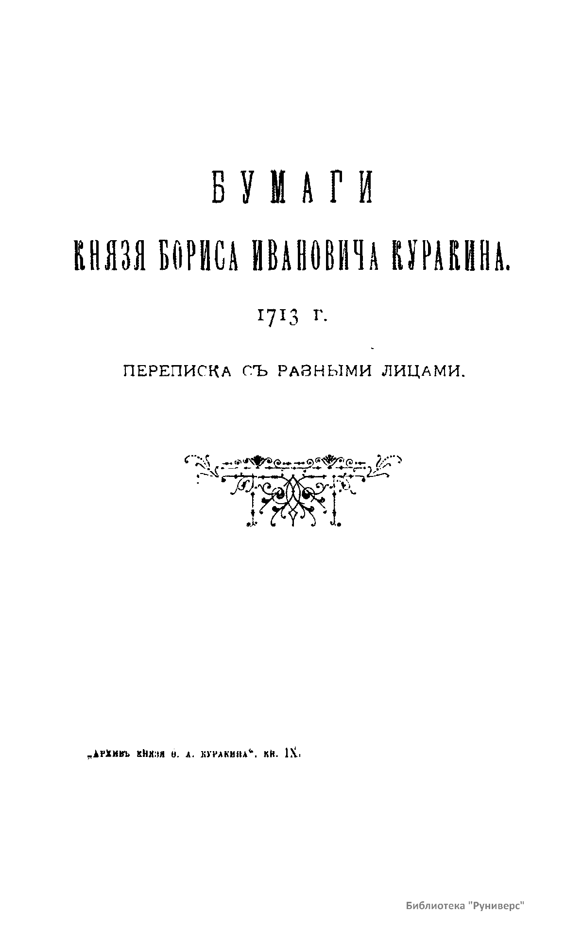 Архивъ князя Ѳ.А. Куракина. Книга девятая