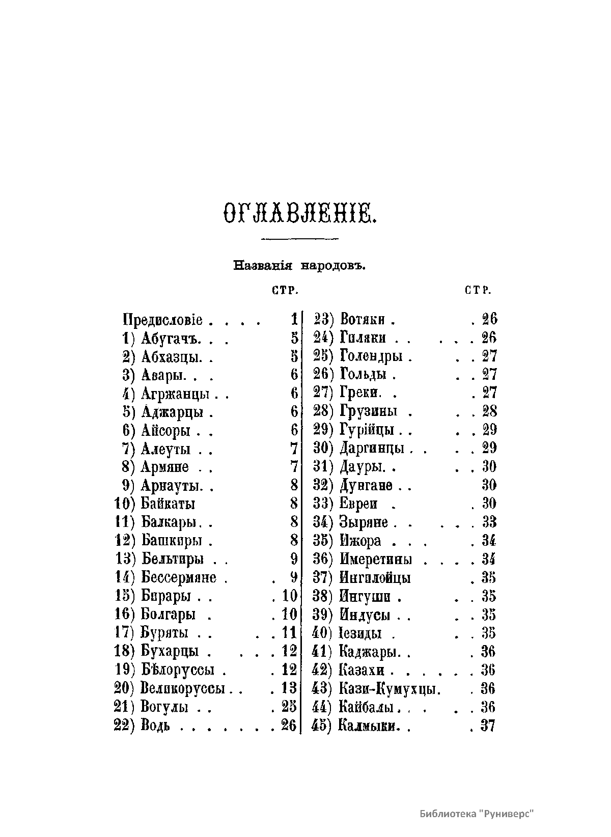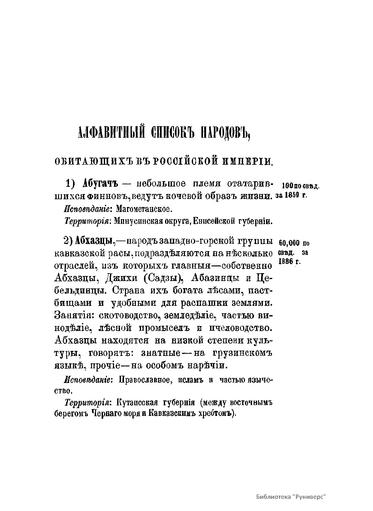 Алфавитный список народов, обитающихъ в Российской Имперiи