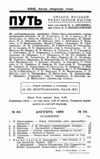 Путь: Орган русской религиозной мысли. №23. Август 1930