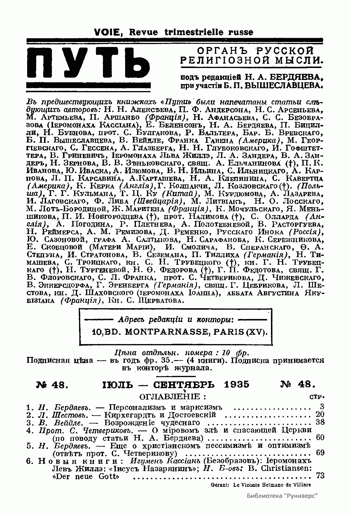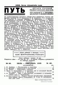 Путь: Орган русской религиозной мысли. №48. Июль-Сентябрь 1935