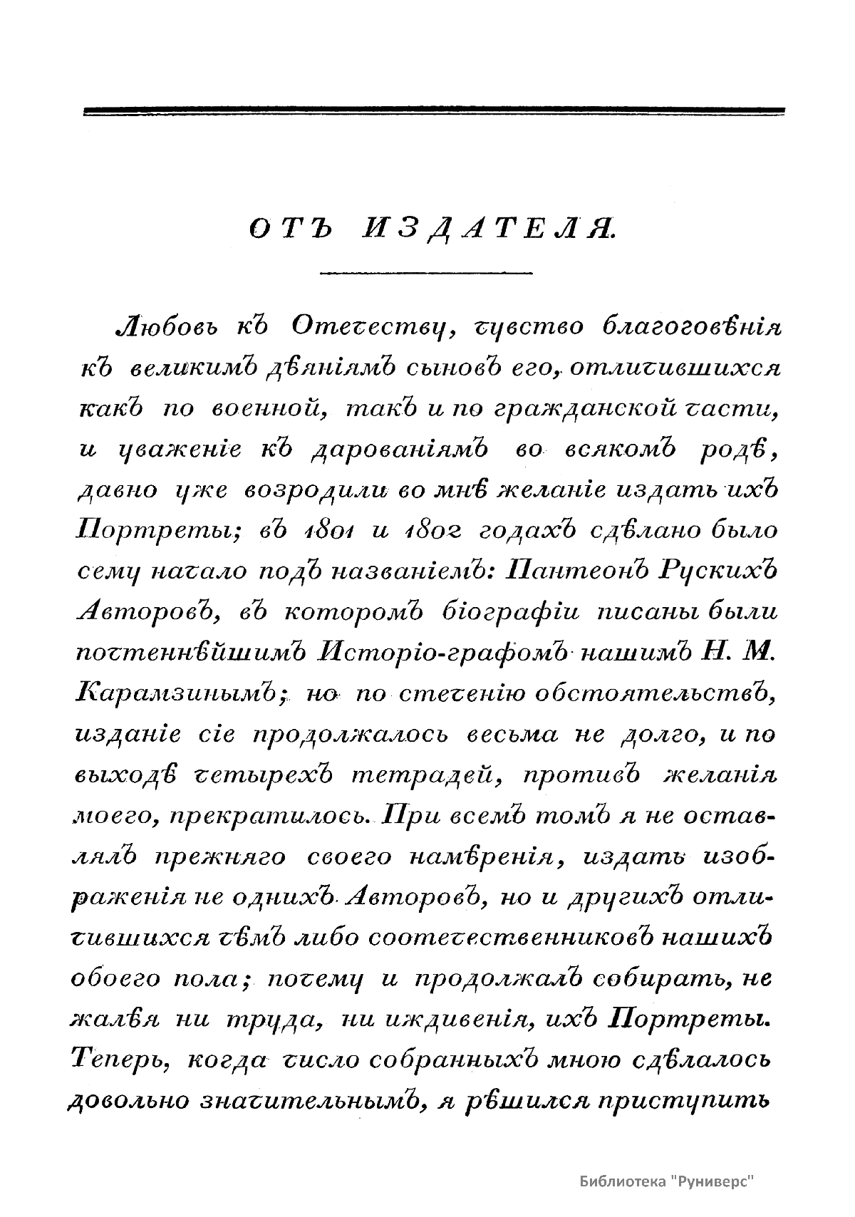 Собранiе портретовъ россiянъ, знаменитыхъ по своимъ дѣяниямъ воинскимъ и гражданскимъ, по учености, сочиненiямъ, дарованiямъ, или коихъ имена по чему другому сдѣлались извѣстными свѣту, въ хронологическомъ порядкѣ, по годамъ кончины, съ приложенiемъ ихъ краткихъ жизнеописанiй