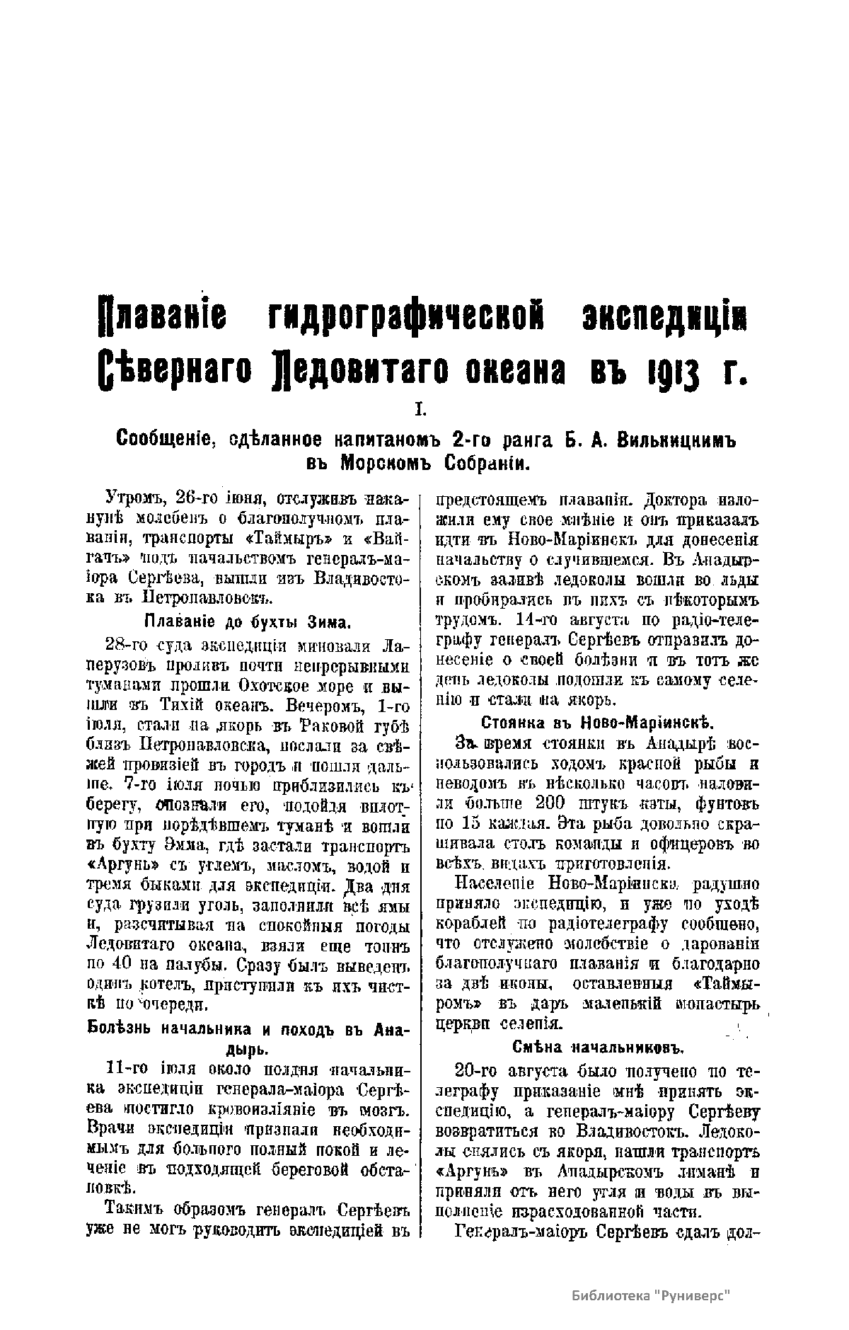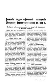 Плаванiе гидрографической экспедицiи Сѣвернаго Ледовитаго океана въ 1913 г.