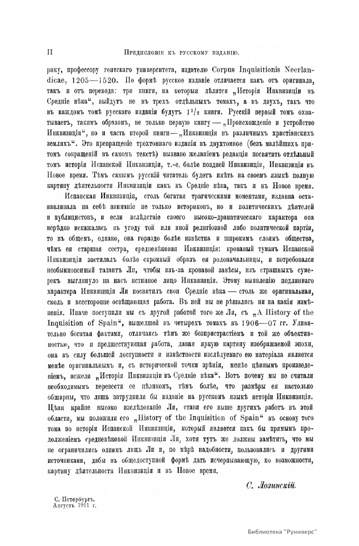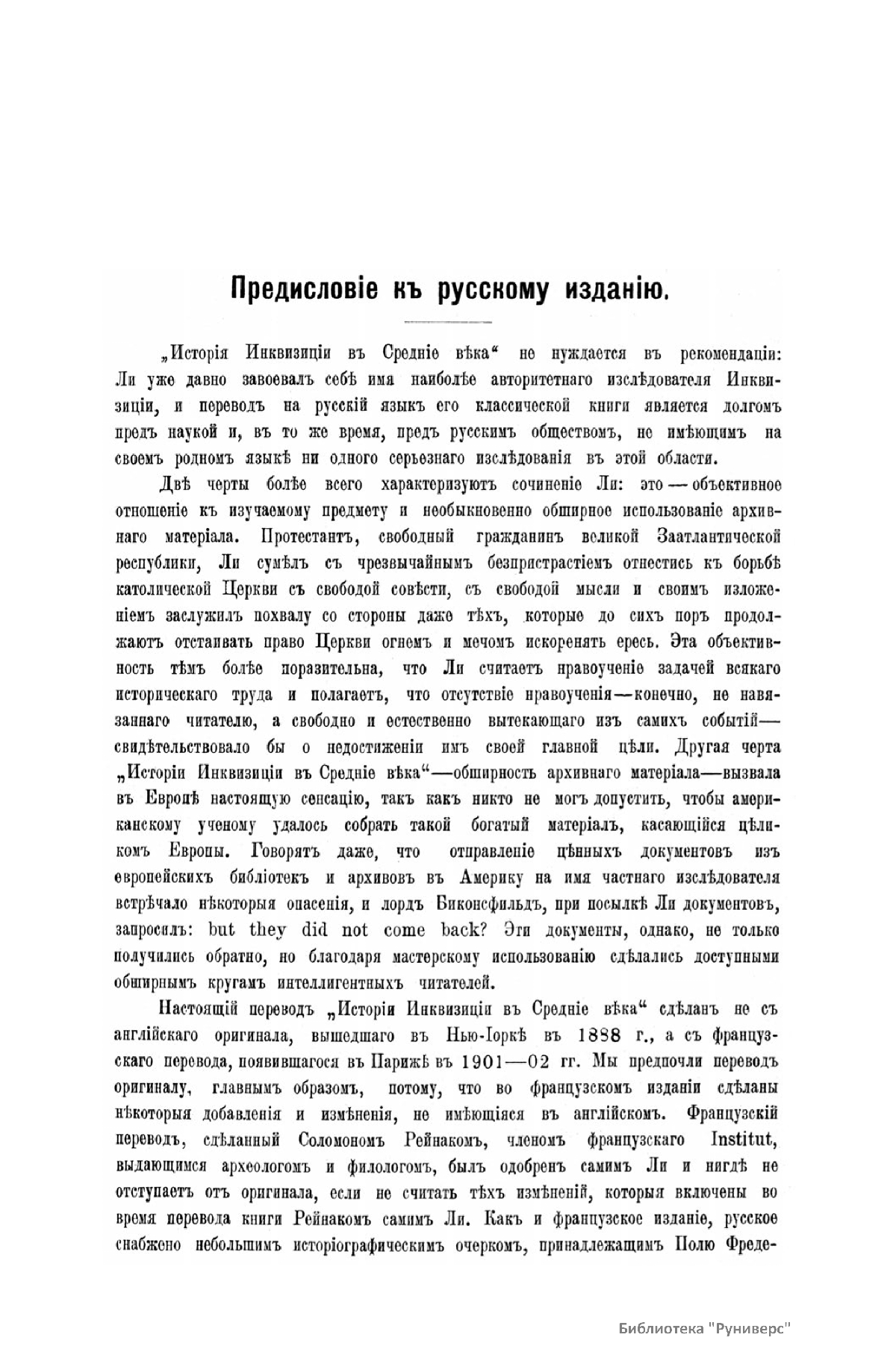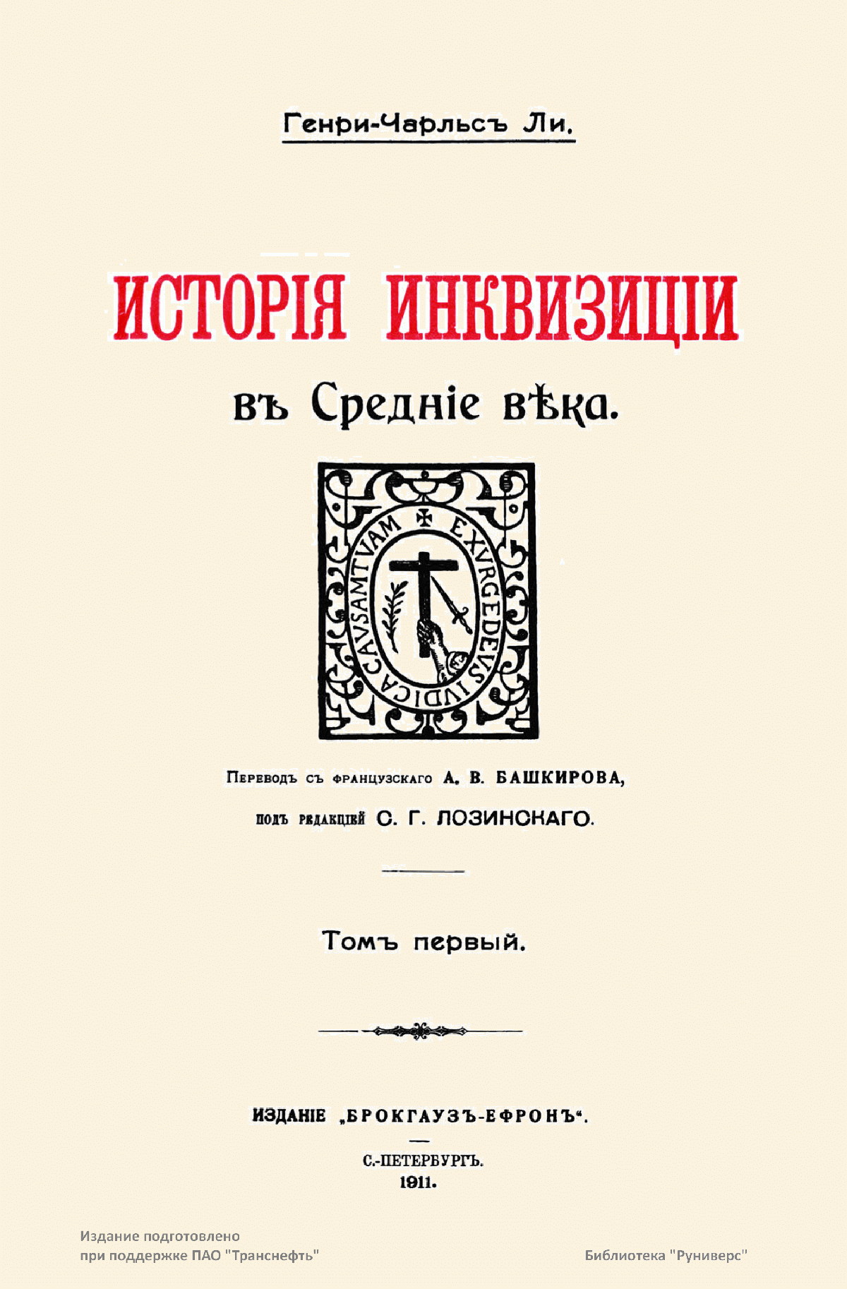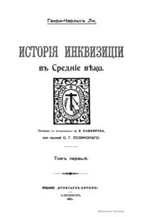 Книга американского исследователя Генри-Чарльза Ли (1825–1909), основанная на обширном документальном материале, рассказывает о возникновении и деятельности инквизиции в Средние века. В издании описаны знаменитые процессы над Яном Гусом, Савонаролой, Жанной д’Арк, гроссмейстером тамплиеров Жаком де Молэ, «Синей Бородой» — Жилем де Рэ и др.