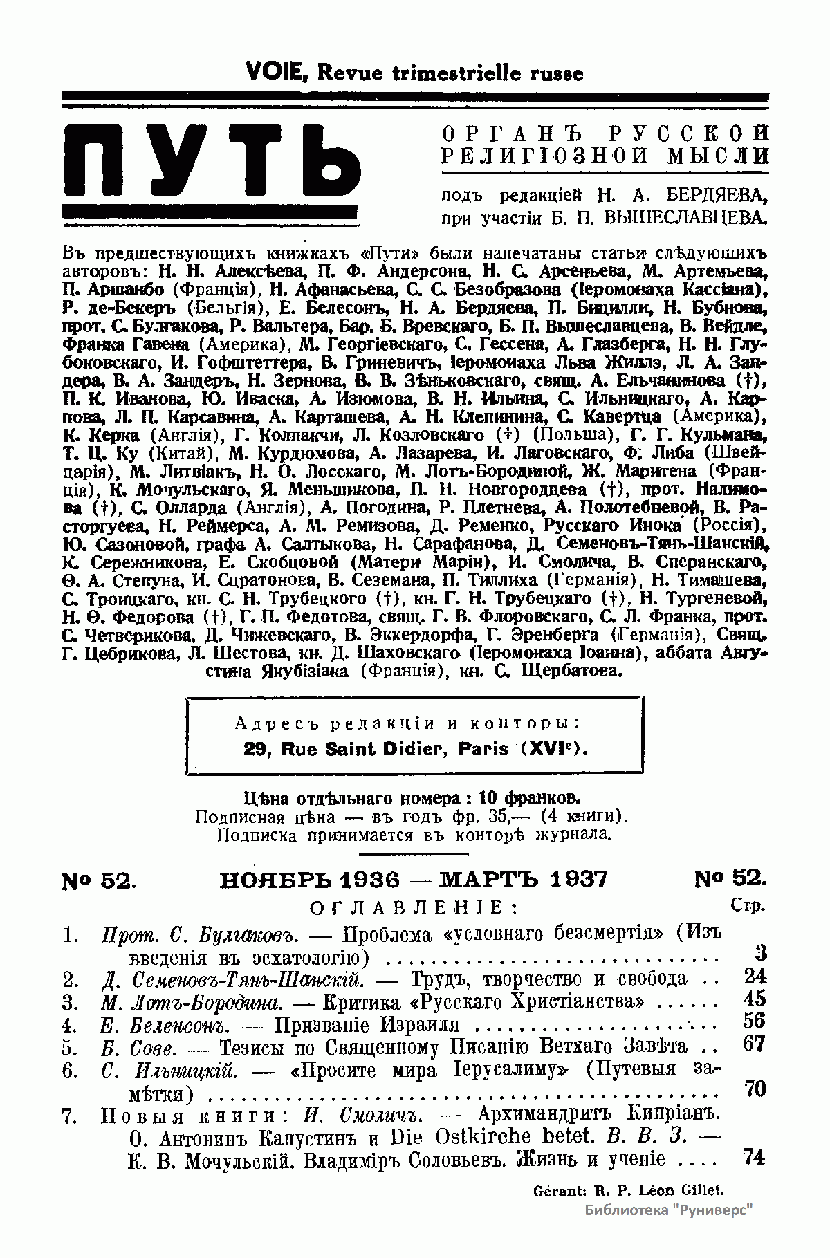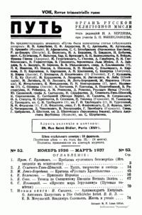 Путь: Орган русской религиозной мысли. №52. Ноябрь 1936-Март 1937