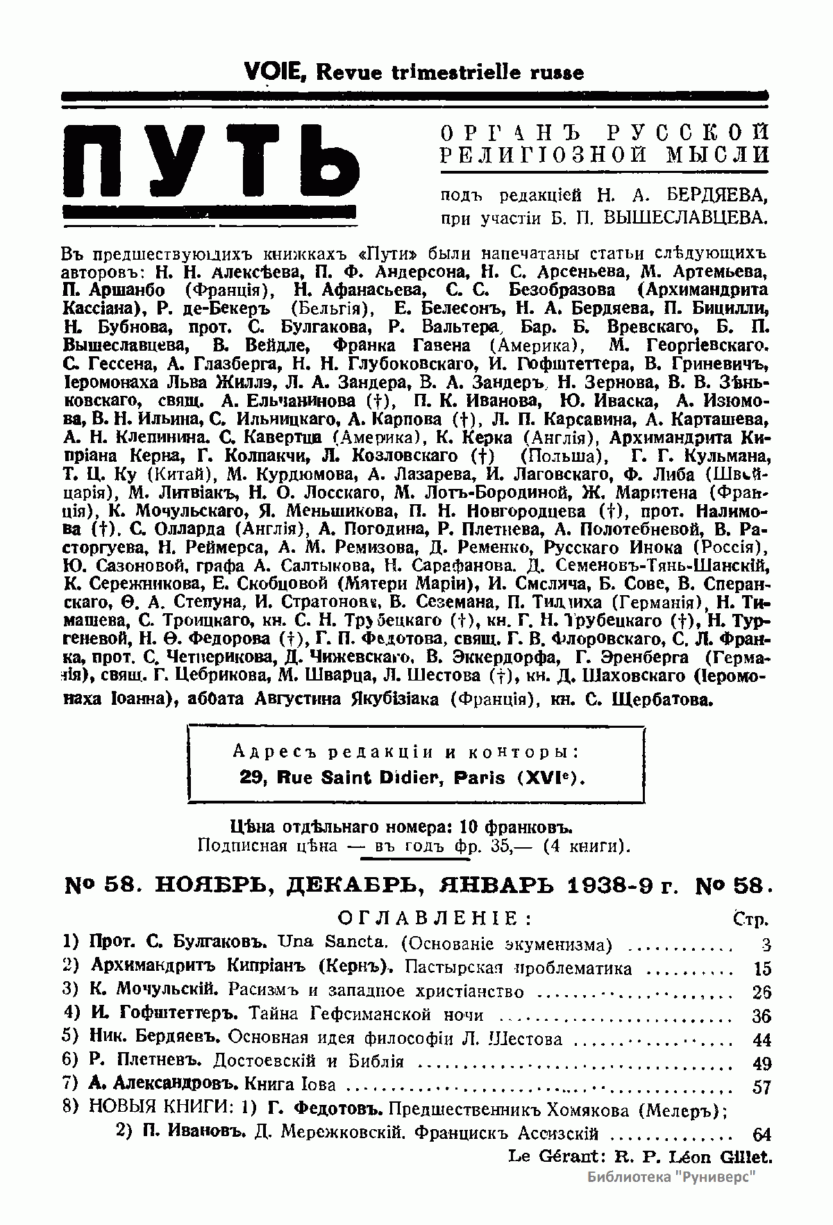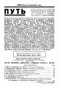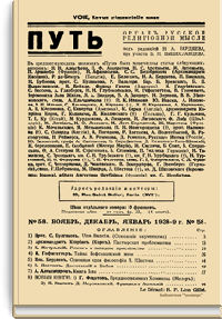 Путь: Орган русской религиозной мысли. №58. Ноябрь-Декабрь-Январь 1938-9