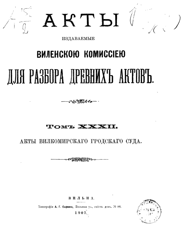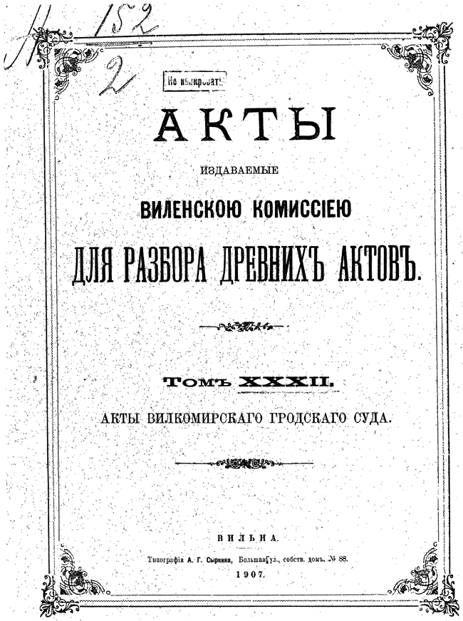 Акты Виленской археографической комиссии: Том XXXII.