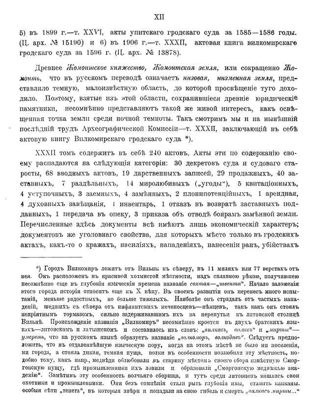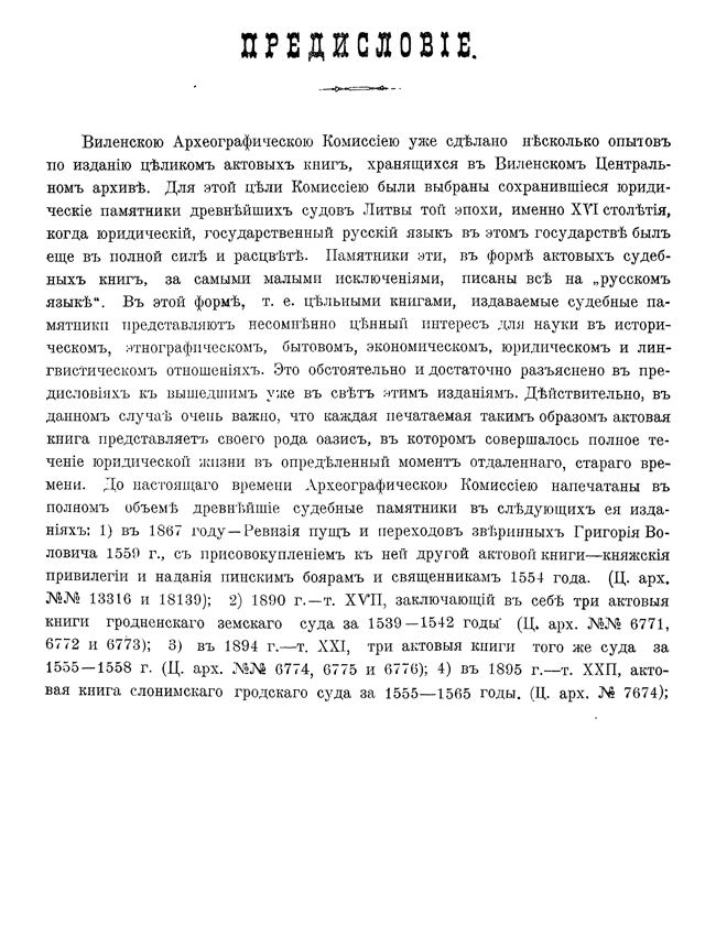 Обилие актов и документов Виленского центрального архива (19244 актовых книг) и желание исследовать прошлое Литвы, которая и в старину принадлежала России, вызвали после 1863 года учреждение особой комиссии для разбора в городе Вильне древних актов.