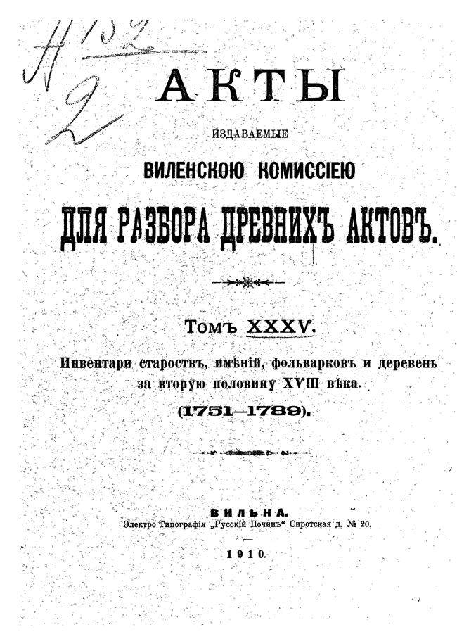Акты Виленской археографической комиссии: Том XXXV.