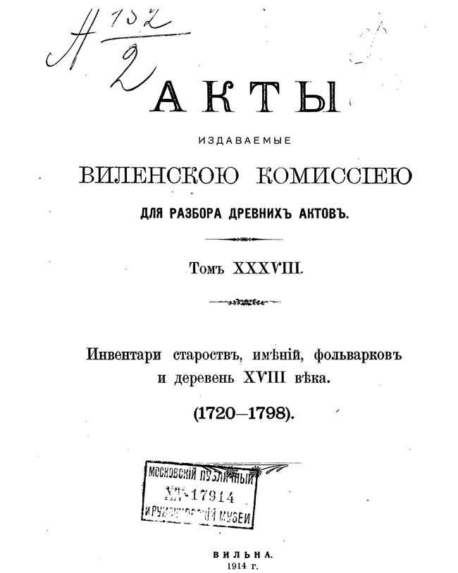 Акты Виленской археографической комиссии: Том XXXVIII.