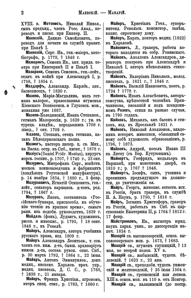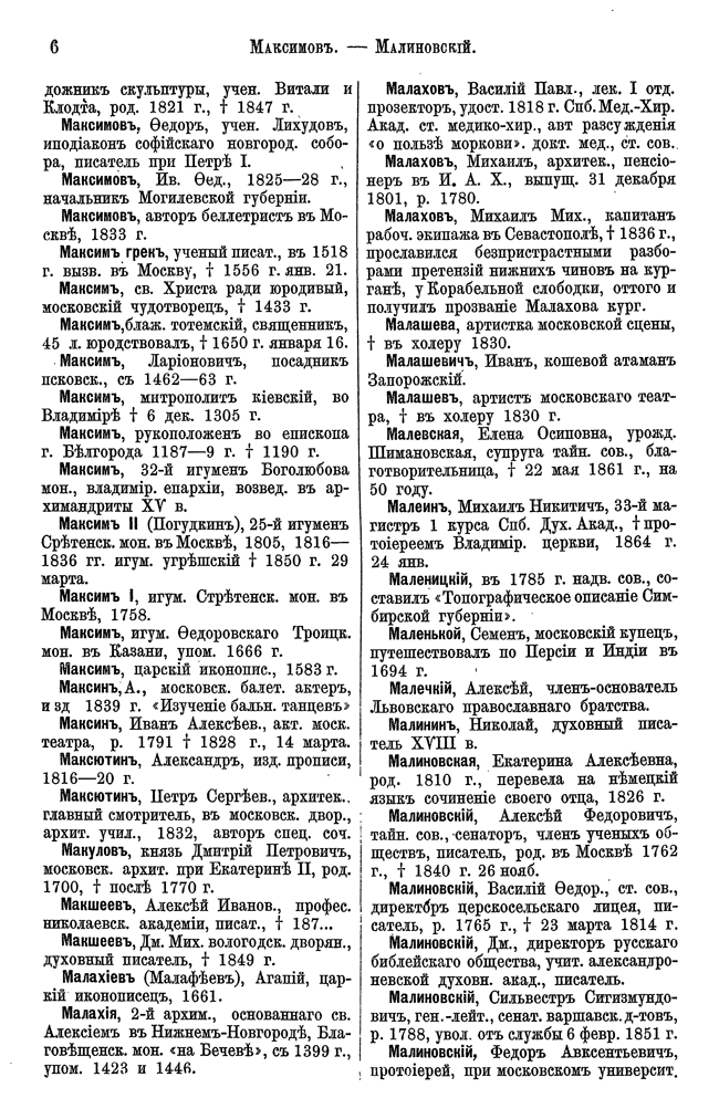 Первая попытка Русского Исторического Общества составить биографический словарь важных отечественных деятелей. Носила подготовительный характер и представляет собой просто список имен, с указанием срока жизни и основного занятия.