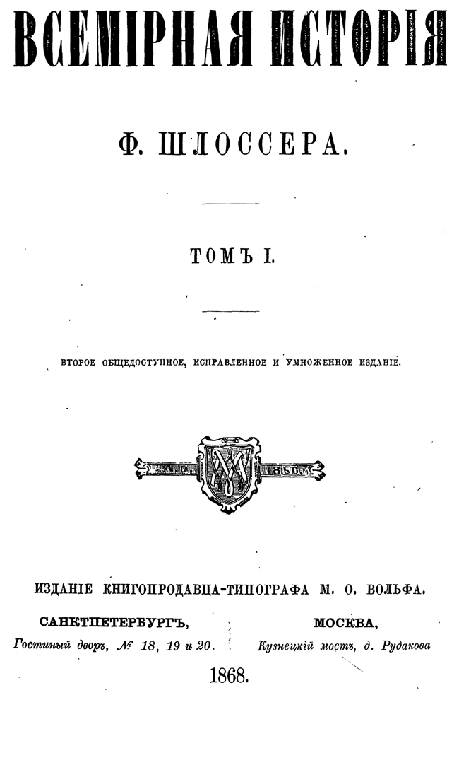 Издание книгопродавца-типографа М.О. Вольфа