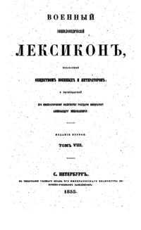 Военный энциклопедический лексикон впервые издавался с 1837 по 1850 год и насчитывает 14 основных томов и один дополнительный (вышел в 1852 г.). Этот огромный труд обязан своим появлением почти исключительно энергии и настойчивости его редактора барона Л. И. Зедделера, на котором лежала вся основная масса работы. По сути своей «Лексикон» являлся первой русской военной энциклопедией (до него выходил только двухтомный «Военный словарь» С. А. Тучкова, в 1818 г.). Несмотря на довольно холодный приём военными кругами первых выпусков «Лексикона», выходившего небольшими книжками (известно, что первая часть состояла из четырёх отдельных книжек) через значительные промежутки времени и стоившего в продаже весьма немалых денег, Зедделер настойчиво занимался его изданием, вложив, помимо личного труда, и значительную часть своего состояния, и в течение 13 лет привёл его к окончанию. Программа «Лексикона» была намечена чрезвычайно широко, имея в виду крайне низкий образовательный уровень армейского офицерства времён императора Николая I и трудность пополнения общего образования при глухих стоянках и постоянном передвижении полков с места на место. В силу этого в «Лексикон» включён ряд сведений, весьма отдалённо связанных с военным делом. Барону Зедделеру удалось привлечь к составлению «Лексикона» наиболее выдающихся военных и учёных Николаевского времени, среди которых особо выделяются К. Ф. Багговут, М. И. Богданович, К. М. Базили, А. В. Висковатов, Н. С. Голицын, А. Н. Греч, Д. А. Милютин, А. И. Михайловский-Данилевский, П. И. Рикорд и другие. Из отделов «Лексикона» наиболее полным и наиболее тщательно составленным является военно-исторический отдел; слабее всего выглядит отдел военной техники, что вполне соответствует тогдашнему её состоянию. «Лексикон» построен по алфавиту статей; к некоторым томам сделано особое «Прибавление», включающее в себя некоторые статьи, пропущенные по разным причинам в предыдущих томах. В связи с долгим изданием «Лексикона» и достаточно быстрым устареванием имеющихся в нём сведений, в 1852 г. был выпущен дополнительный том под названием «Прибавление к Военному энциклопедическому лексикону».