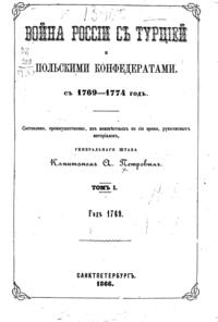 Война России с Турцией и Польскими конфедератами с 1769-1774 год
