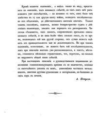Также Петров представил в описании ход военных действий не так, как он видется историку на расстоянии большого количества времени, после изучения разнообразных документов, но если бы автор и читатель находились на месте человека, принимающего решения в тот самый исторический момент; при этом, означенное события разъясняется позднее до действительного значения фактов.