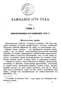 Предпринимая описание первой турецкой войны, в царствование Екатерины II, автор старался изложить военные и политические события того времени с возможною полнотой, насколько это позволяли известные ему рукописные материалы архивов, генерального штаба, государственного и министерства иностранных дел. Петрову посчасливилось одним из первых разбирать дела управления графа Румянцева, только переданные в архив генштаба.