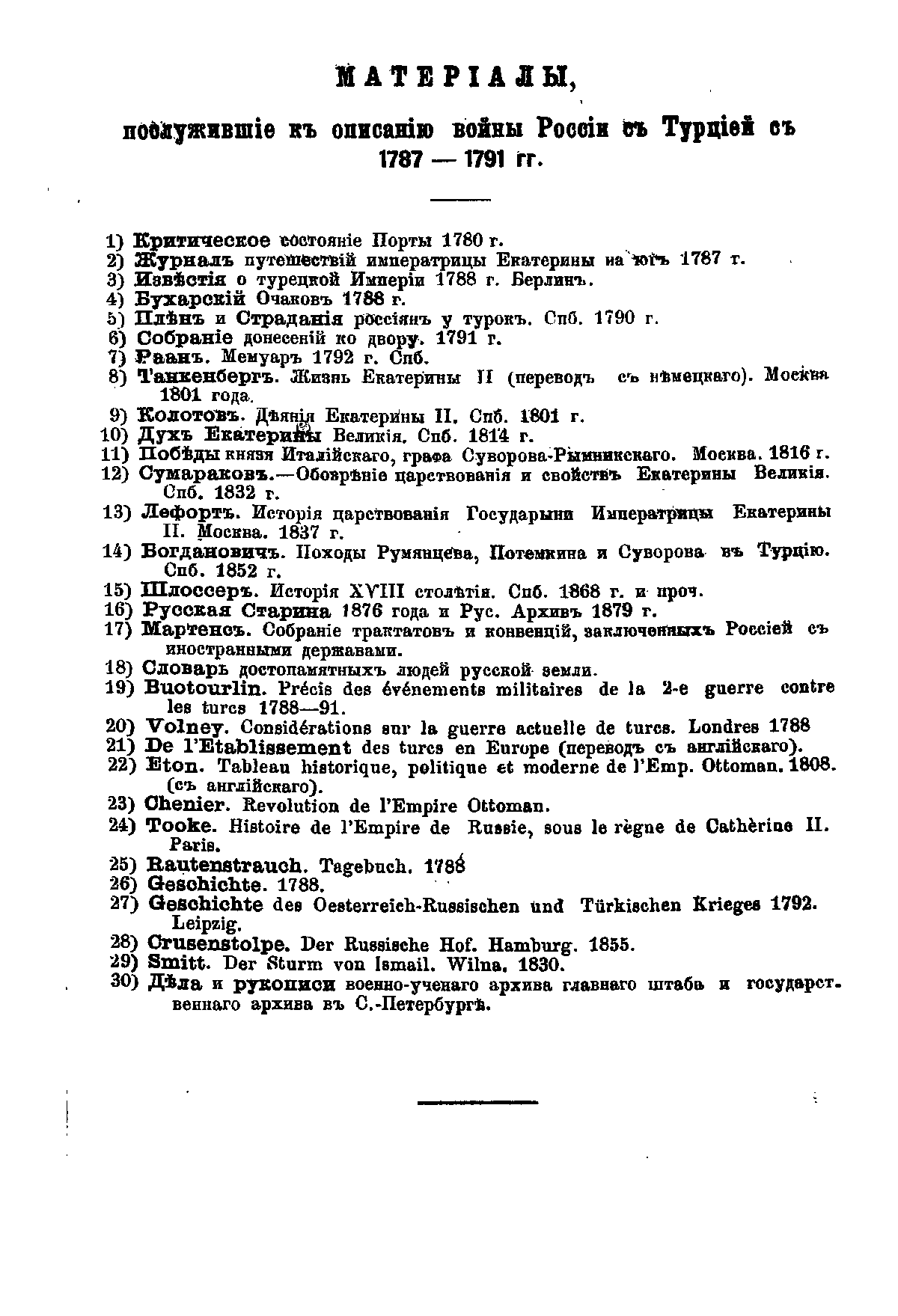 Вторая турецкая война в царствование императрицы Екатерины II. 1787-1791 гг.