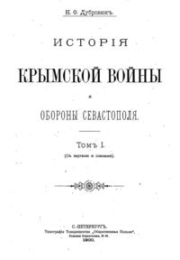 По желанию цесаревича Александра Александровича ( будущего императора Александра III), военному министерству было поручено выделить автора для составления книги о Крымской войне, и в особенности, героической Севастопольской обороне. Таким автором был выбран полковник Дубровин, уже известный специалист по этому периоду, бывший редактором «Севастопольского сборника».
